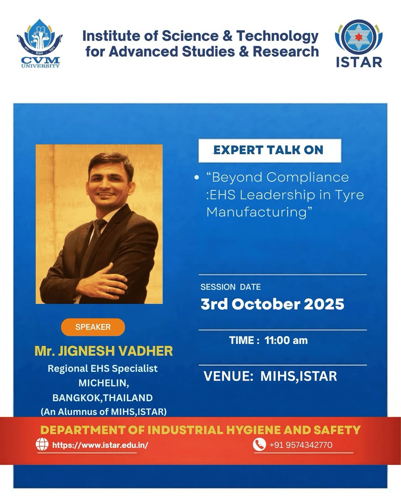 Title | Expert Talk by Mr. Jignesh Vadher,Regional EHS Specialist,Michelin,Bangkok-Thailand |