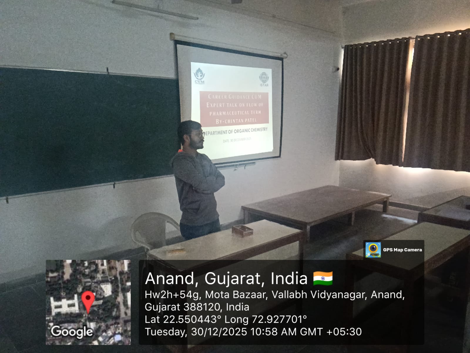 Mr. Chintan Patel is an alumnus of the Department of Organic Chemistry, ISTAR, who completed his Master’s degree in 2018. He is currently working as Head, ADL Department at Nia Innovations LLP, Vadodara. He delivered an insightful talk on the role and working performance of various departments in a pharmaceutical company. He also discussed “Do’s and Don’ts” in campus placement interviews. He shared his professional experience in the ADL department and motivated the students. |